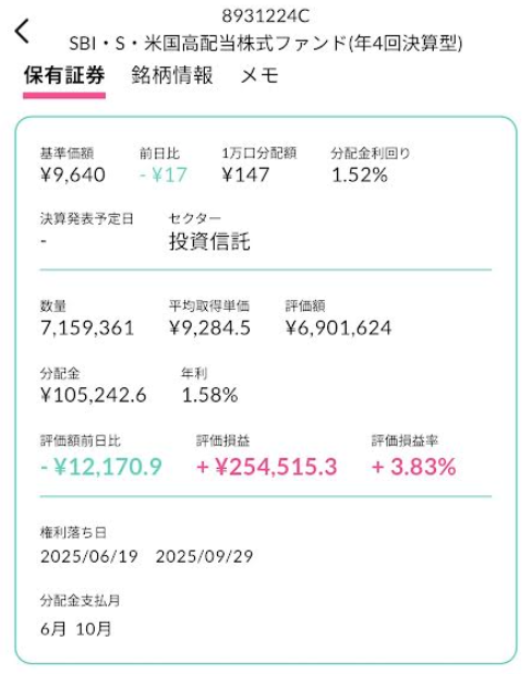 ・SBI SCHD : 4.6万円 9/29 配当再投資