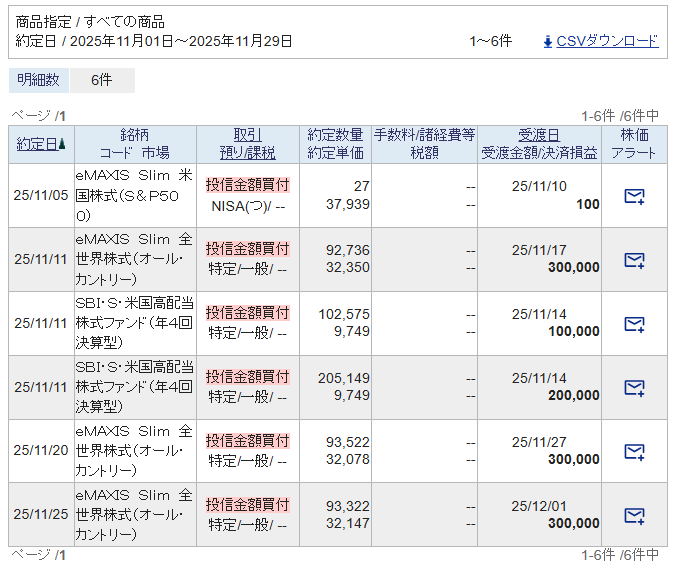 ・SBI SCHD : 60万円 11/11 毎月積立