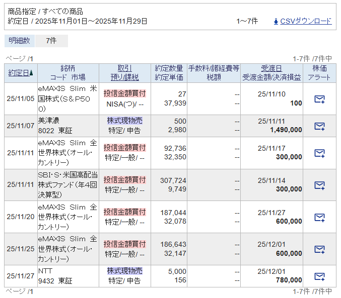 【不労所得】配当収入推移 2025年11月