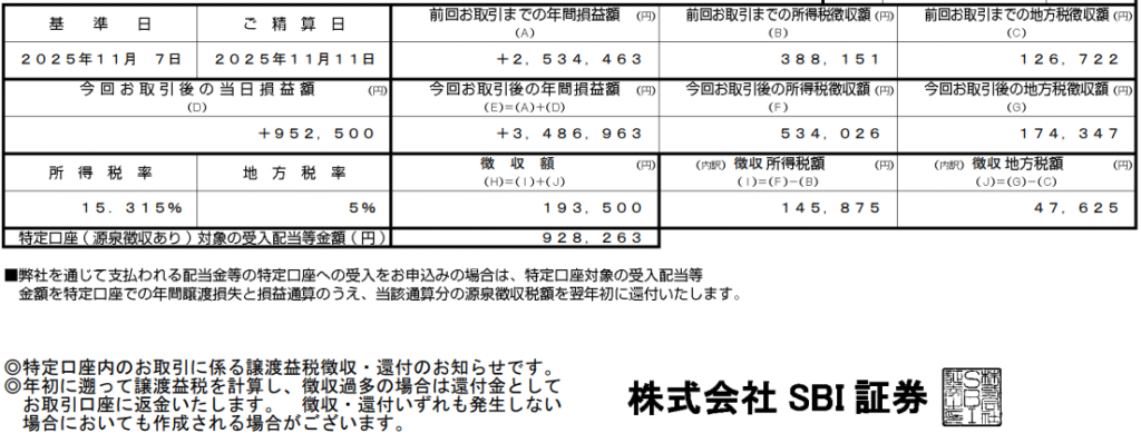 総配当金額:2,653,248円(税引き後)2025年11月29日時点
