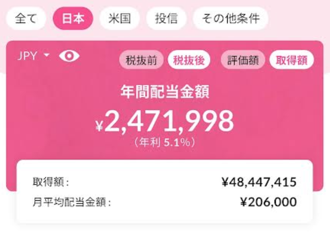 日本株配当金額:2,471,998円(税引き後) 2025年11月29日時点