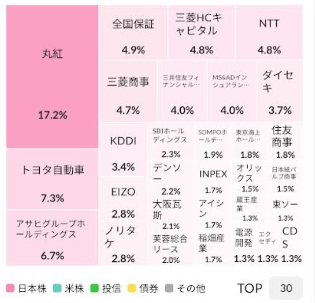 資産の半分以上が日本個別株に偏っているため、