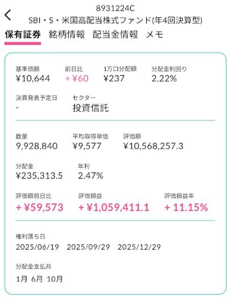 1月はSBI SCHDを毎月の積立含めて150万円分買い足しました。