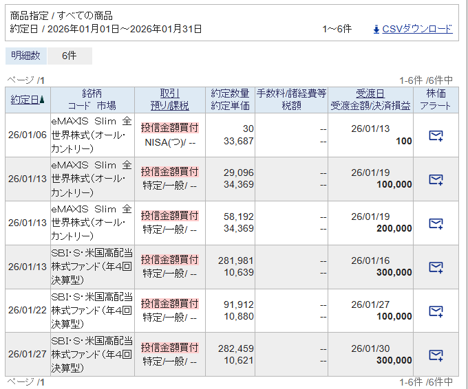・SBI SCHD : 90万円 1/22、29 スポット購入
