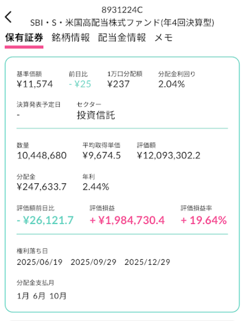 あとは配当再投資のみ継続し、今後の基準価額の上昇と増配を楽しみにして、