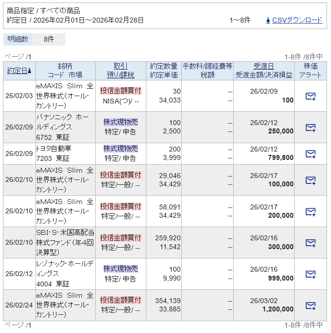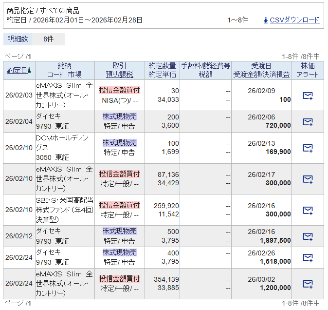 2月はSBI SCHDの毎月積立の最終月として60万円分を買い足し、