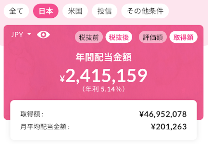 日本高配当株での年間配当は240万円は維持したいと考えています。
