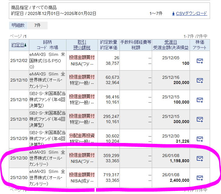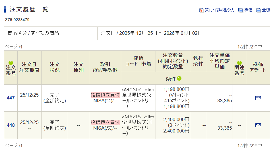 また、2026年の新NISAの一括投資買付も年末に完了させました。