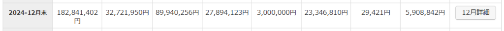 | 単位 万円 | 2025 12/31 | 前月差 | 2025 11/30 | 年初差 | 2024 12/31 |